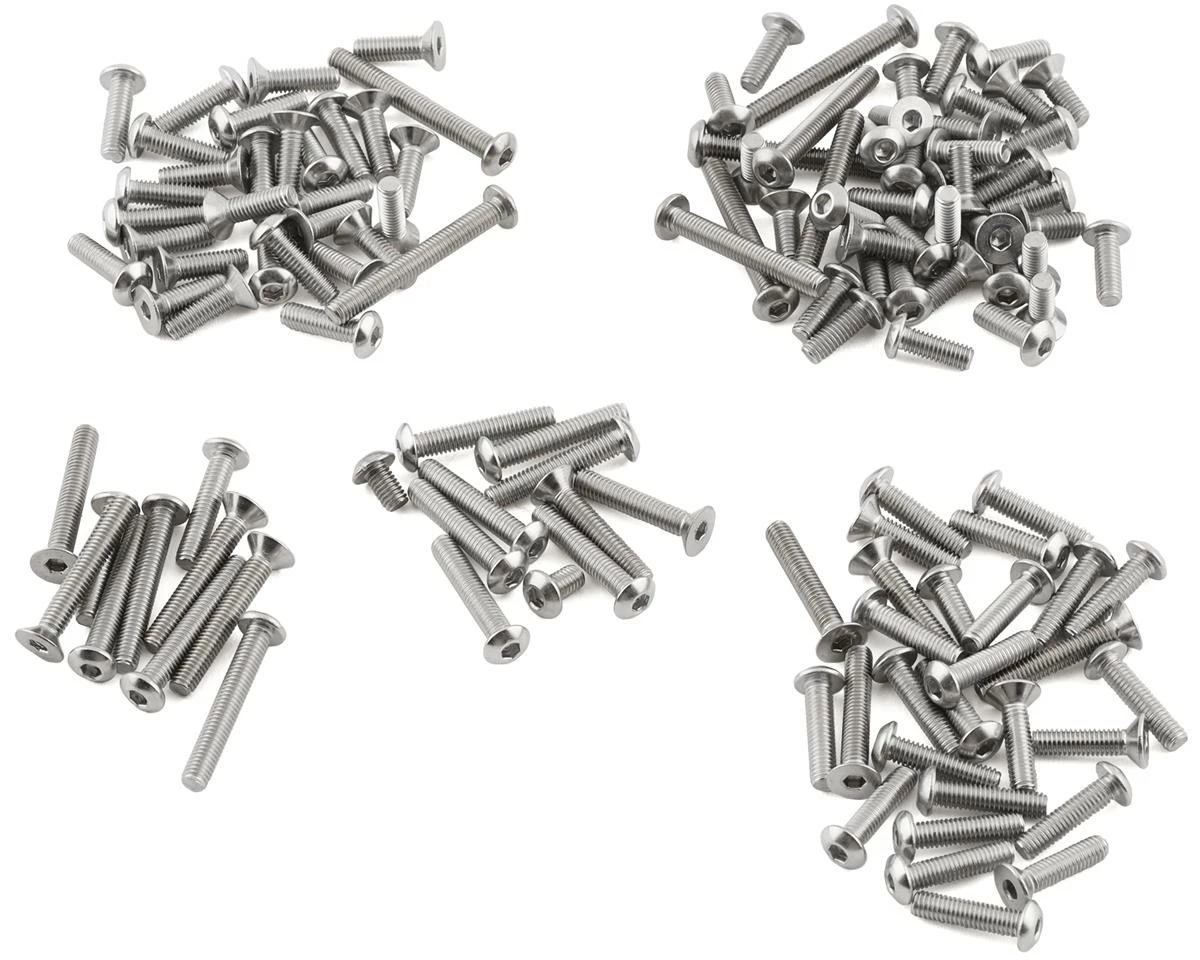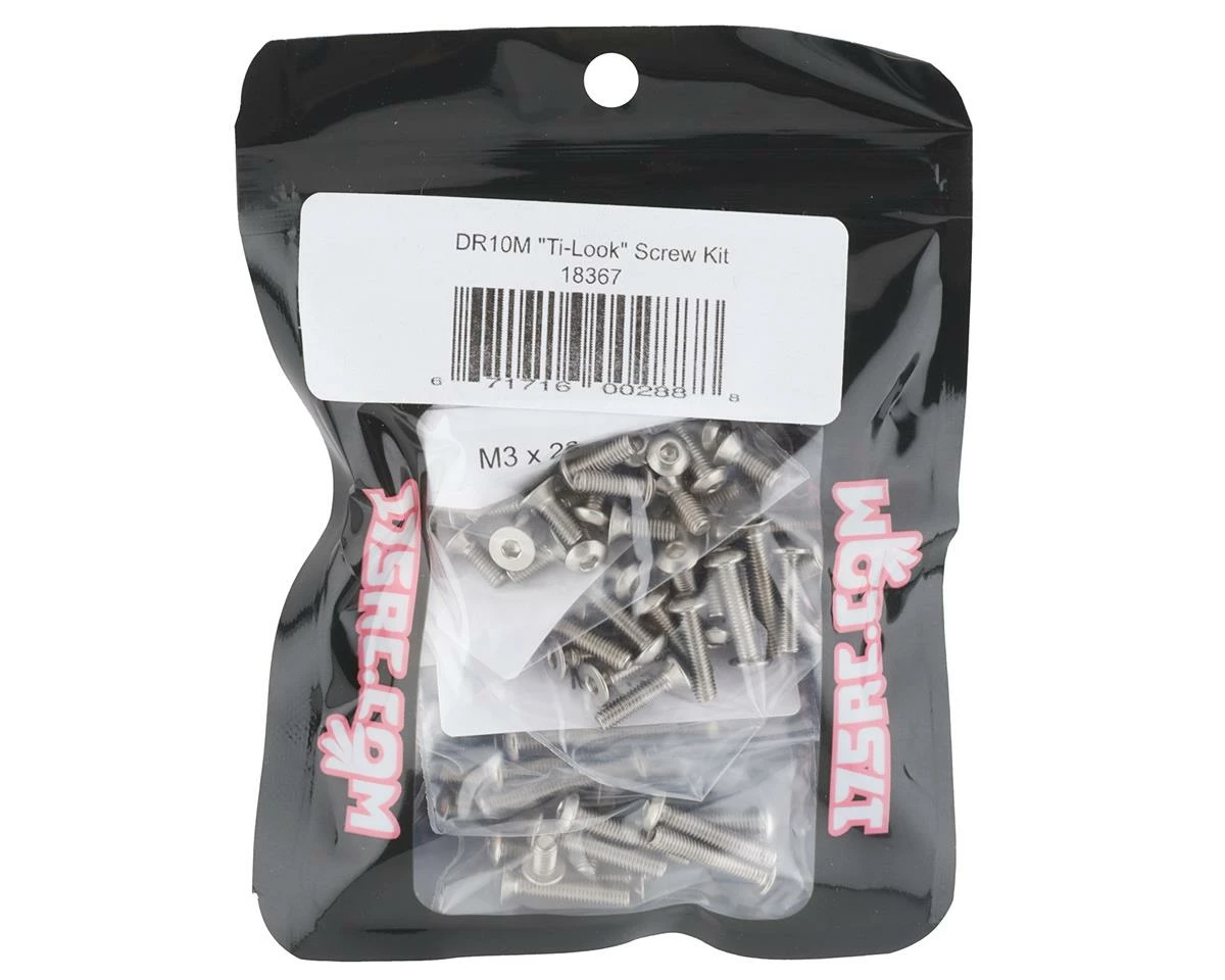 This is a 175RC “Ti-Look” Screw Kit, intended for use with the Team Associated DR10M as an optional screw kit for added strength and style. The “Ti-Look” Screw Kit gives any ride the Factory look, without the factory price tag. Not just a box or bag full of screws, the 175RC screw kit comes in labeled bags with descriptions for an easy install.