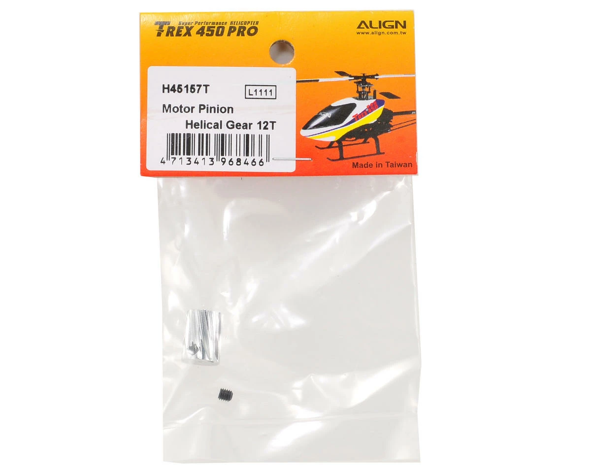 This is a replacement Align 12 Tooth Helical Motor Pinion Gear, and is intended for use with the Align T-Rex 450 family of helicopters.