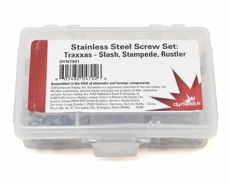 This is an optional Dynamite Stainless Steel Screw Upgrade Set for the Traxxas Slash, Stampede, Rustler and Bandit vehicles. These stainless steel screws are far superior to the stock screws included. These kits are made with the best stainless steel money can buy. No more bent, rusted or corroded screws or stripped heads again.