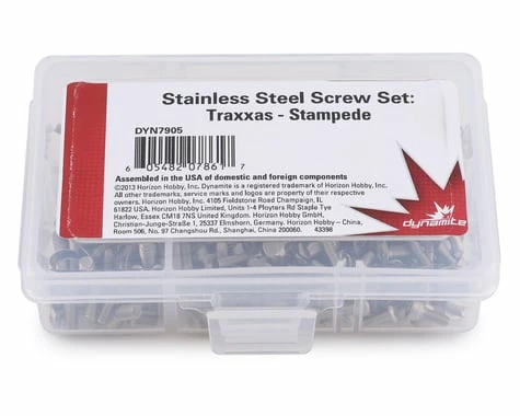 Dynamite Traxxas Stampede 4×4 Stainless Steel Screw Set. This optional screw kit features full stainless hardware for added durability. Package includes one screw kit intended for the Traxxas Stampede 4×4.