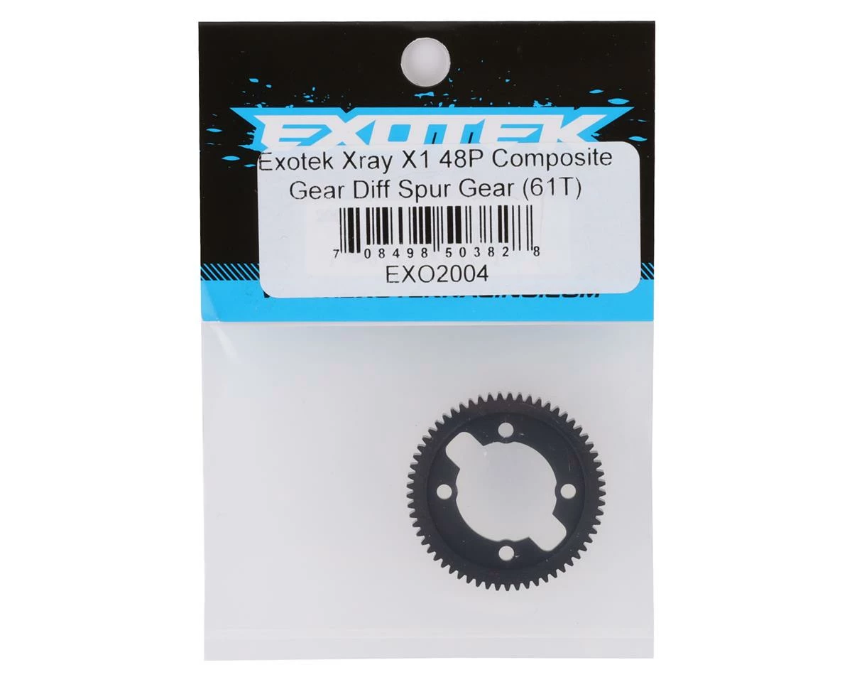The Exotek XRAY X1 48P Composite Gear Diff Spur Gear is an optional upgrade for the XRAY X1/X12 gear diffs. This spur gear is more durable than the stock 64 pitch gears, especially needed in open wheel F1 and out door race settings. This spur gear is made from black acetal (delrin) and CNC machined for ultimate trueness. A direct fit with the stock hardware for easy installation.