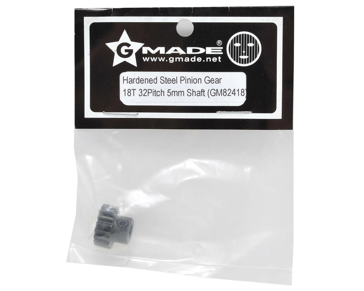 Gmade 32 Pitch Hardened Steel Pinion Gear, with a 5mm bore. This gear is available in a variety of tooth count options to fine tune torque and top speed.