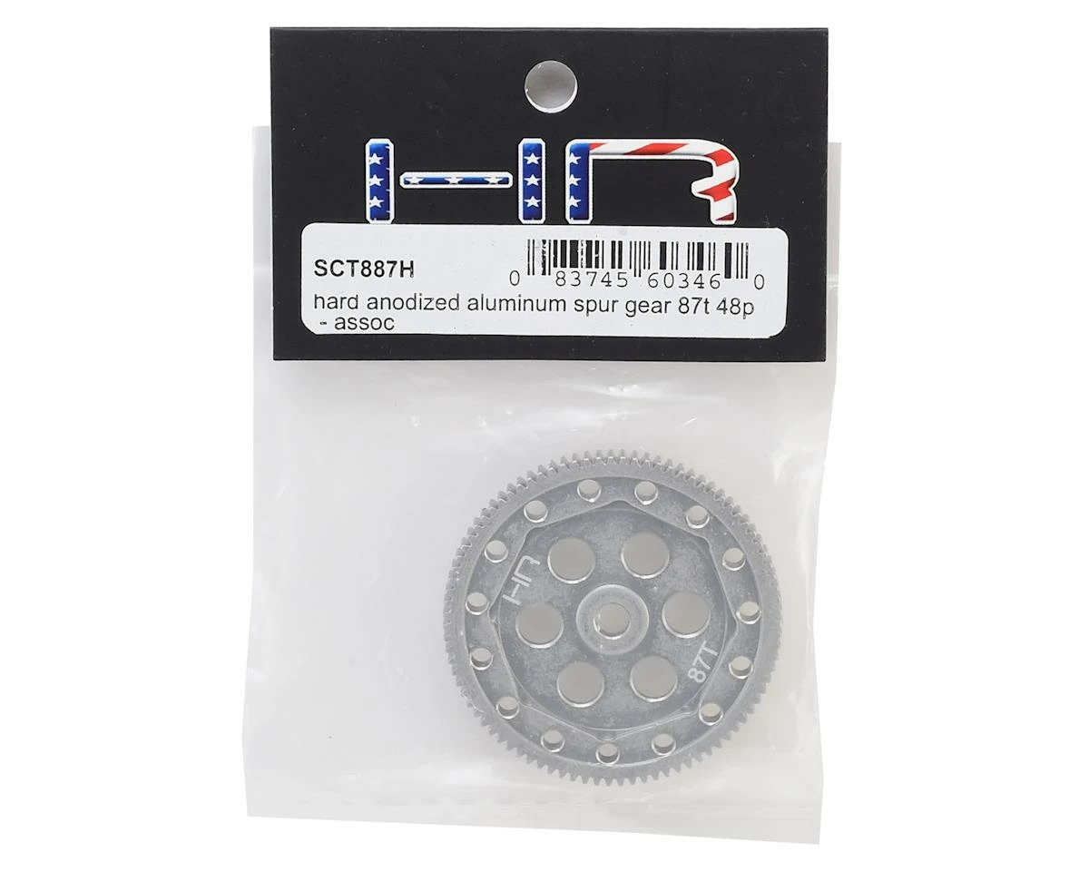 The Hot Racing Associated 48P Aluminum Spur Gear is an upgrade metal 87T spur gear for the Team Associated SC10, B.4, T4, T5M, SC5M, B5, B5M, RC10, and B44 (not .3) models. This is also compatible with Arrma 1/10 2WD.