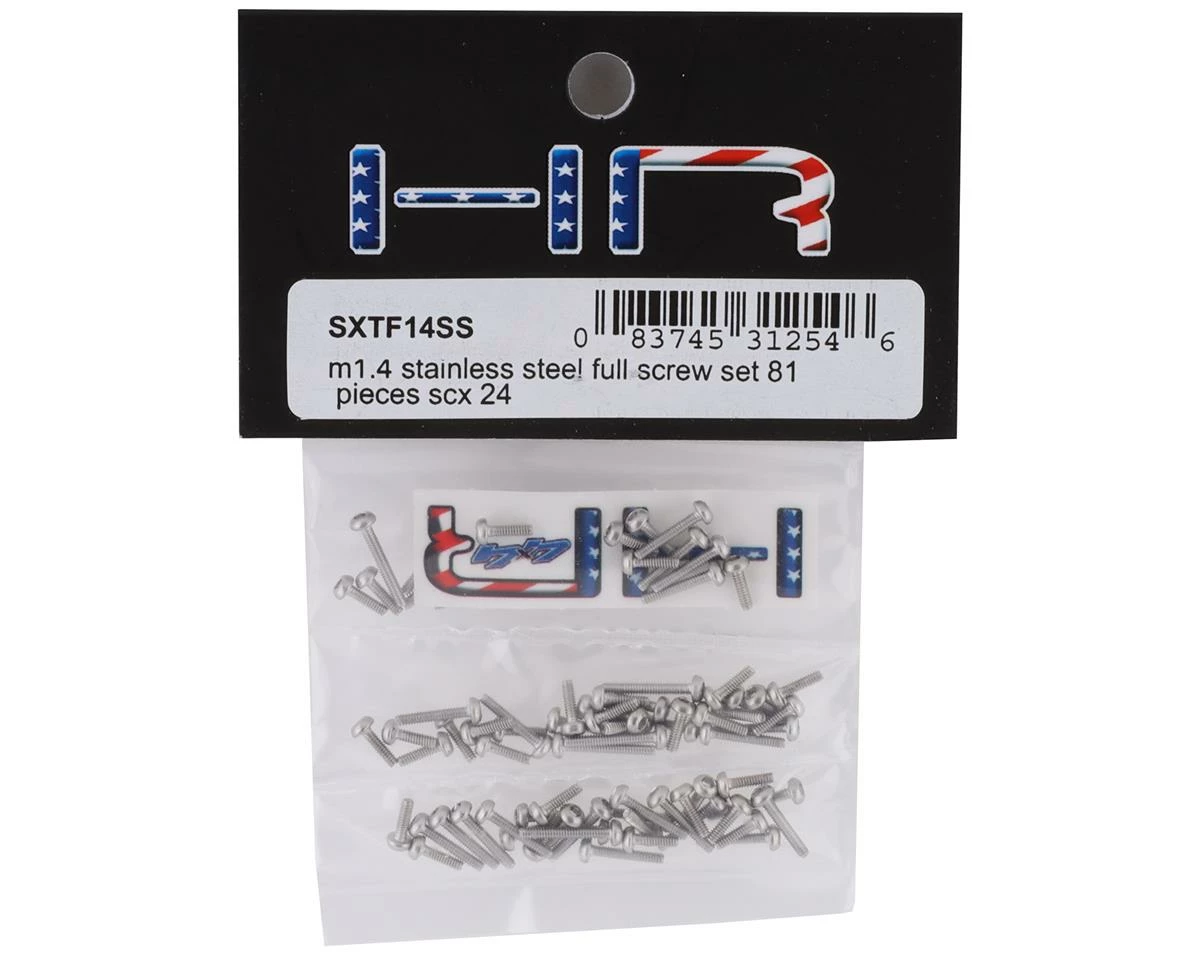 The Hot Racing Axial SCX24 M1.4 Full Screw Set is a complete eighty one piece stainless steel hex screw kit that is compatible with all SCX24 models.