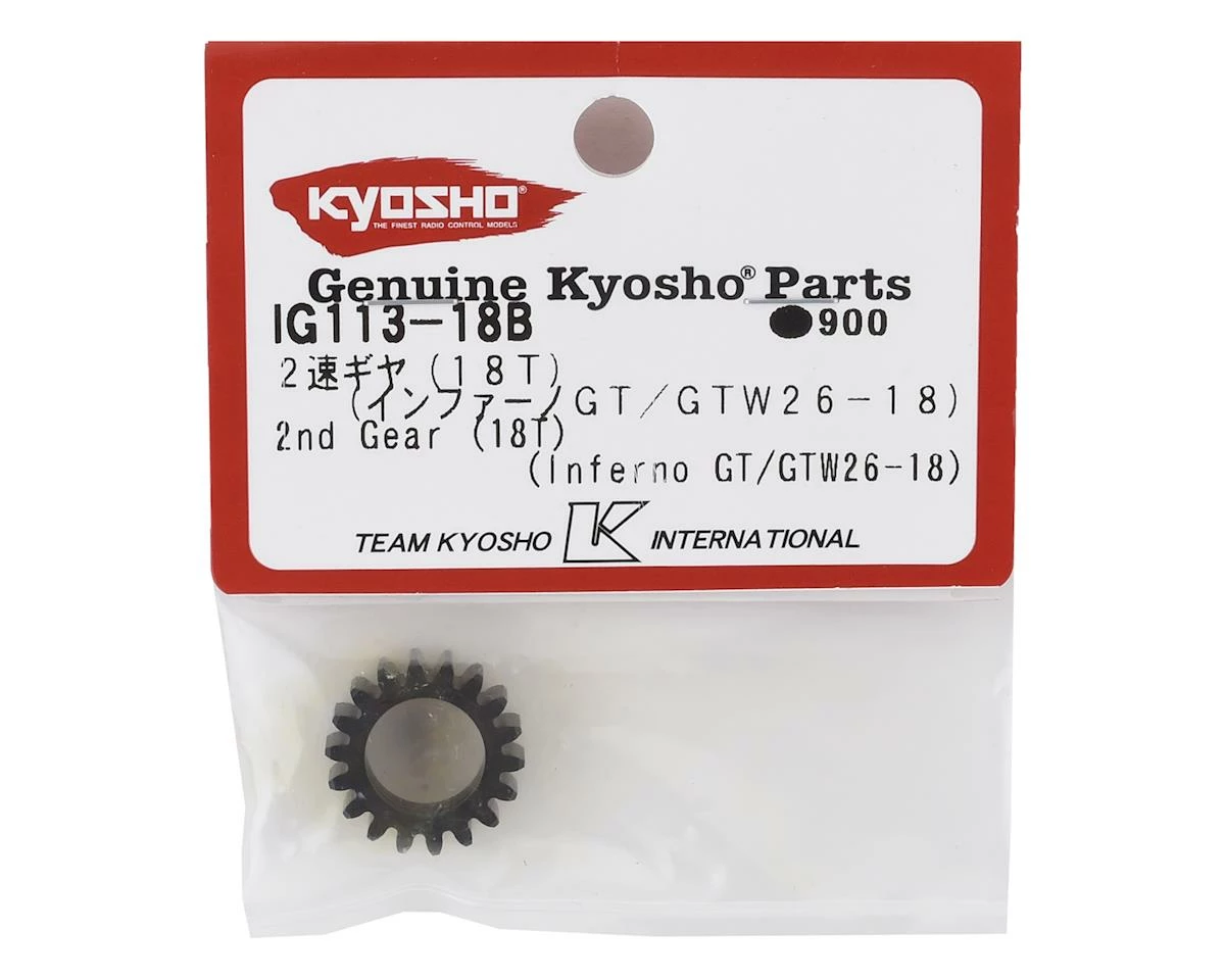This is a replacement Kyosho 18T 2nd Gear, intended for use with the 2 speed unit of the DRX/Inferno GT Series.Â