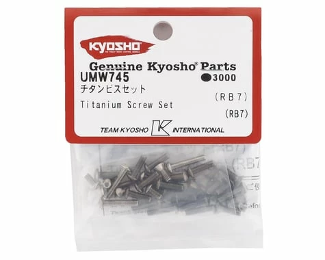This is the optional Kyosho Titanium Screw Set for the RB7 2WD Buggy. This titanium screw set is 10 grams lighter than the stock steel screws.