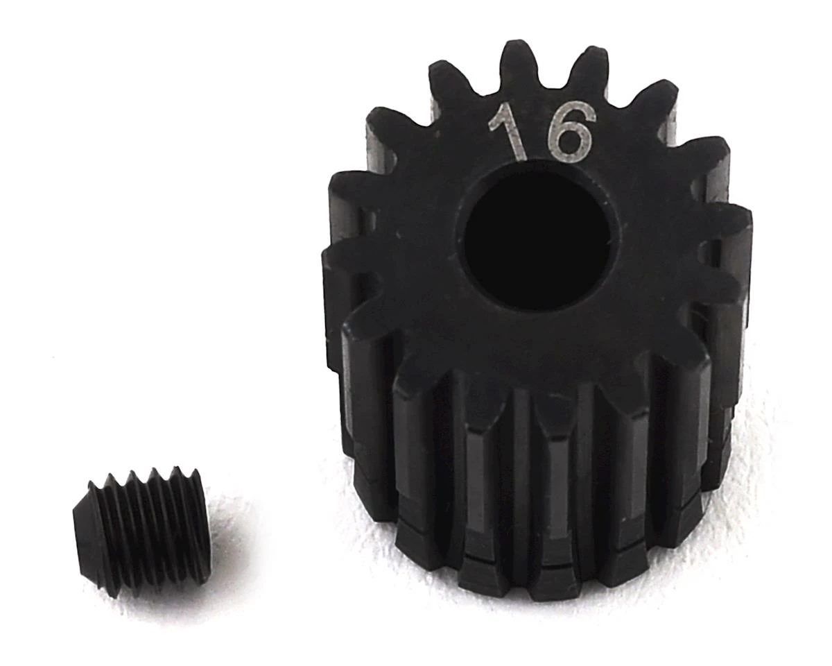 Kyosho 48 Pitch Steel Pinion Gear. These gears are available in a variety of tooth count options to fine tune torque and top speed. Package includes one gear and one set screw.