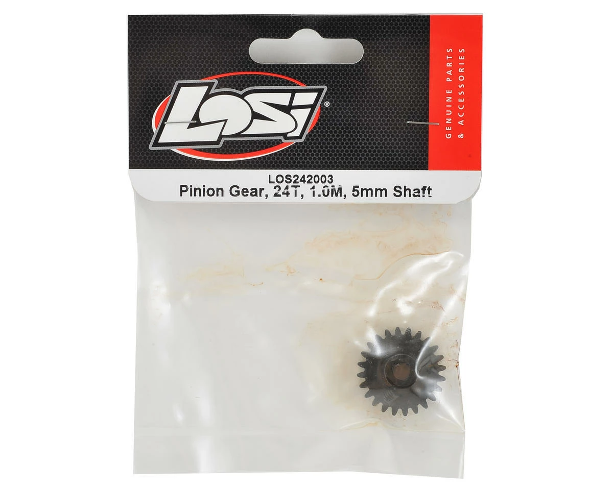 Losi 5mm Big Bore Mod1 Pinion Gear. Choose from a variety of tooth count options to fine tune the torque and top speed of the model. Package includes one gear and set screw.