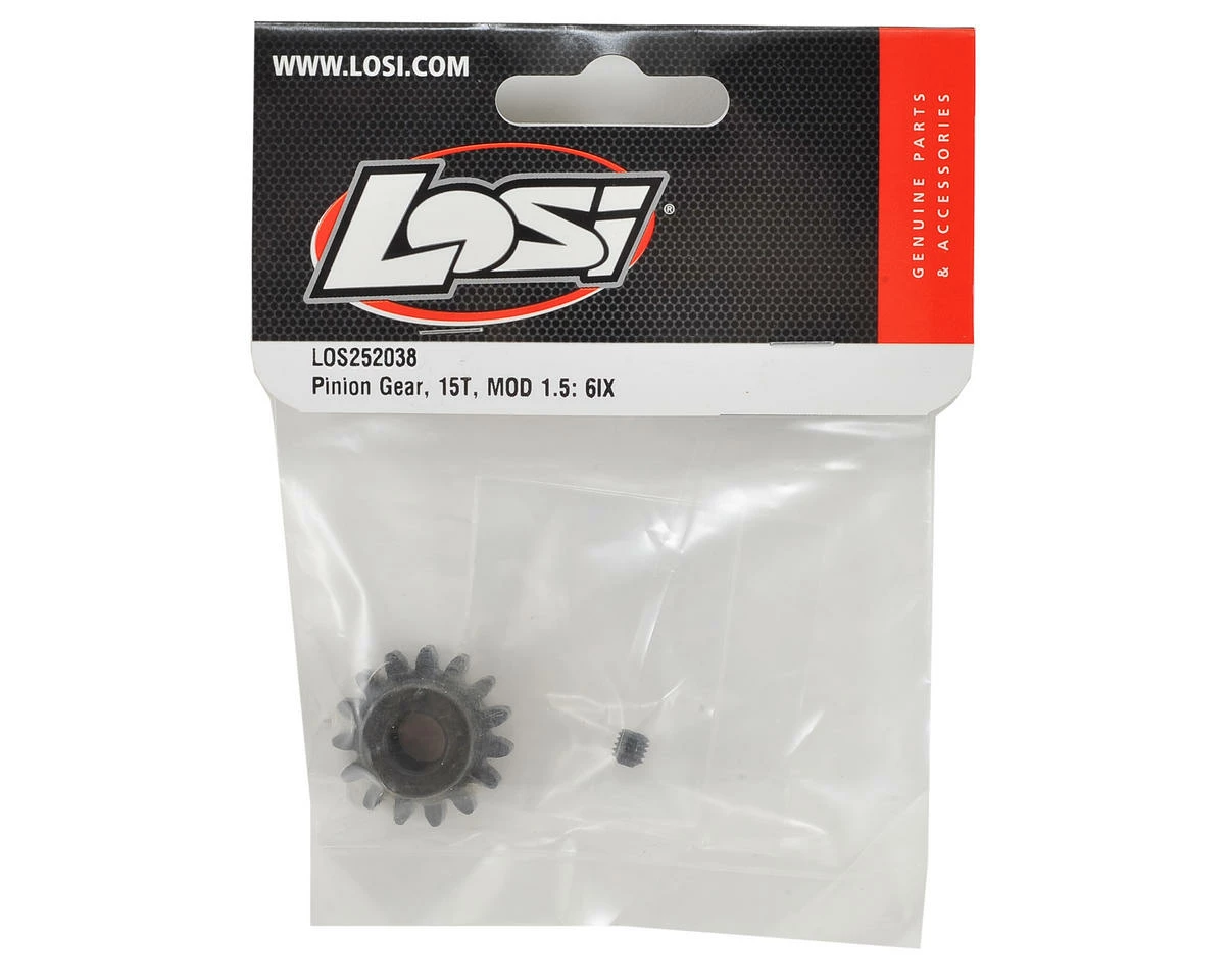 This is a Losi Mod 1.5 Pinion Gear, with an 8mm bore. These pinion gears are used with the 1/6 scale Losi Audi R8 LMS Supercar, but can be used with other applications. Â