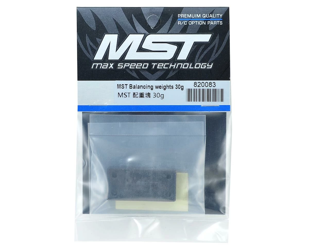 MST Balancing Weights are great to have on hand for tuning your weight bias. With a 35x13mm footprint, this 30 gram weight measures 7mm thick and have M3 through holes on all four corners that will allow them to be used in a variety of applications. Package includes one 30 gram weight and double sided tape for installation.