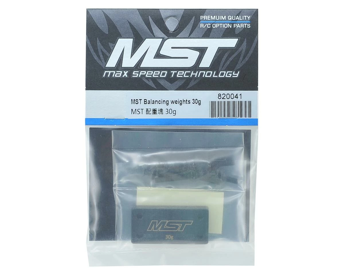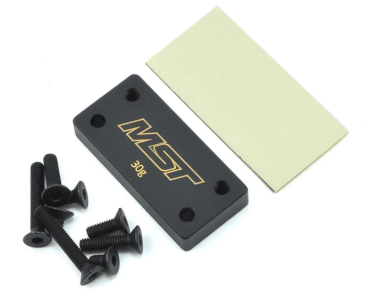 MST Balancing Weights are great to have on hand for tuning your weight bias. With a 35x13mm footprint, this 30 gram weight measures 7mm thick and have M3 through holes on all four corners that will allow them to be used in a variety of applications. Package includes one 30 gram weight, hardware and double sided tape for installation.