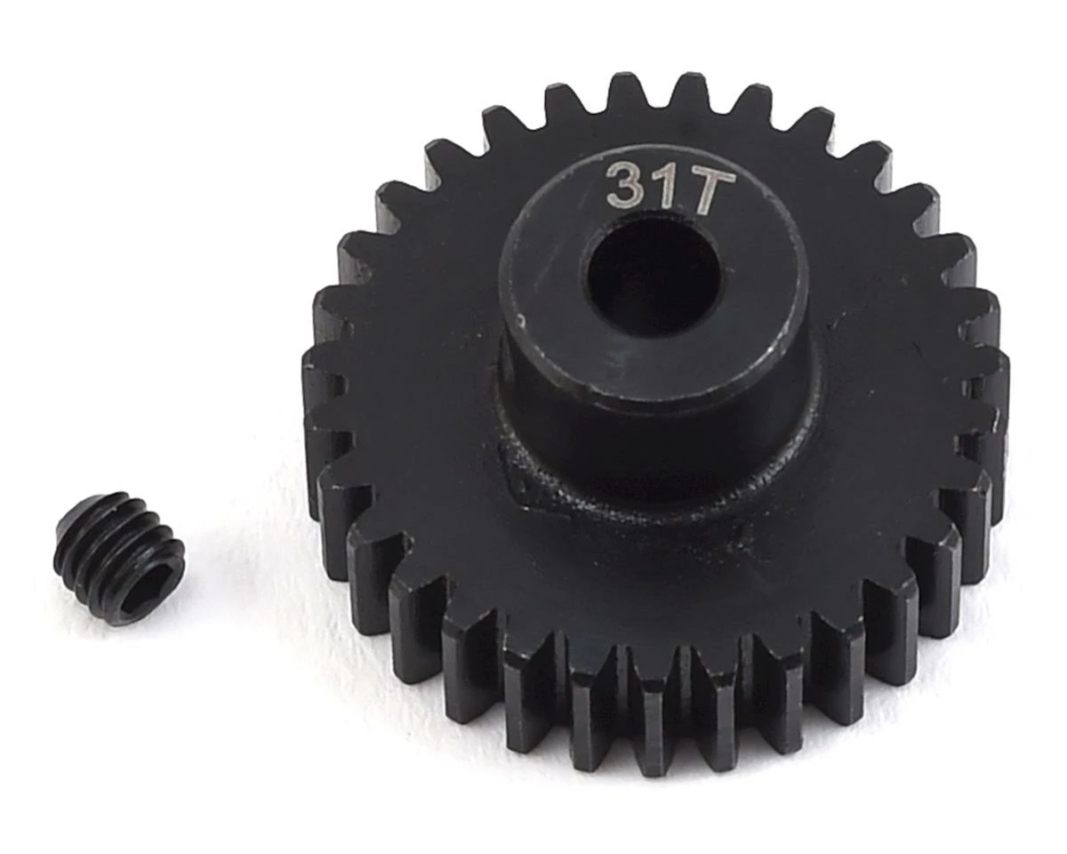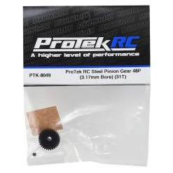 ProTek R/C Lightweight Steel 48P Pinion Gears are an affordable pinion gear option that doesn’t skimp on quality. CNC machined from hardened steel material, these precision cut gears are durable and are perfect for any 48 pitch application. Plus, the 18 tooth and larger gears have been machined on the back side to remove as much weight as possible, without sacrificing strength. These gears are available in 12-41 tooth variants, and the tooth count is engraved on the gear for easy identification. Each gear includes a setscrew to make installation easy. Choose the tooth count you need from the pull down menu above.