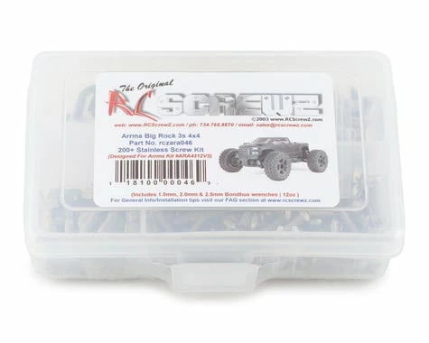This is a optional RCScrewz Stainless Steel Screw kit for the Arrma Big Rock 3S 4×4. RCScrewz Stainless Screw Kits are 100% complete. Your screw kit will include everything needed to do a full conversion and more. Stainless Steel Screw Kits are far superior to the screws that come stock with your RC. RCScrewz kits are made with the best stainless steel money can buy. No more bent, rusted, or corroded screws. Never worry about stripped heads again. You will not find a better screw kit for your RC at any price and RCScrewz Guarantee’s it. If for any reason your not 100% satisfied with your kit, return your screw kit to RCScrewz and they will send you a full refund for the price of the kit.Â