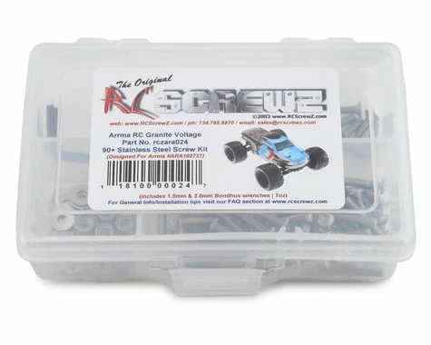 This is an optional RCScrewz Stainless Steel screw kit for the Arrma Granite Voltage. RCScrewz Stainless Screw Kits are 100% complete. Your kit will include everything needed to do a full conversion and more. Stainless Steel Screw Kits are far superior to the screws that come stock with your RC. RCScrewz kits are made with the best stainless steel money can buy. No more bent, rusted, or corroded screws. Never worry about stripped heads again. You will not find a better screw kit for your RC at any price and RCScrewz Guarantee’s it. If for any reason you’re not 100% satisfied with your kit, return your screw kit to RCScrewz and they will send you a full refund for the price of the kit.Â