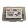 General Screw Installation & Notes:Â Use either a wax or grease on the threads to help prevent stripping while going into new or hard material. Some screws that are included in the these kits remain Phillips heads but are still stainless steel. This has been done for strength, as a result of field testing, on small diameter screws (2mm and 2-56″ dia). This may include some chassis screws and differential screws. All other remain socket head. Please refer to your assembly manual for screw locations.