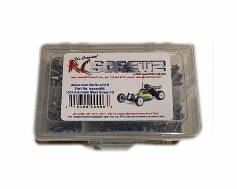 This is a optional RCScrewz Stainless Steel 110 plus piece screw kit for the Associated B4 and B4.1 1/10 buggies. RCScrewz Stainless Screw Kits are 100% complete. Your new kit will include everything needed to do a full conversion and more. Stainless Steel Screw Kits are far superior to the screws that come stock with your RC. RCScrewz kits are made with the best stainless steel money can buy. No more bent, rusted, or corroded screws. Never worry about stripped heads again. You will not find a better screw kit for your RC at any price and RCScrewz Guarantee’s it. If for any reason your not 100% satisfied with your kit, return your screw kit to RCScrewz and they will send you a full refund for the price of the kit.