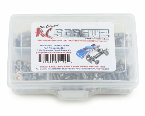This is an optional RCScrewz Stainless Steel screw kit for the Team Associated DR10M. RCScrewz Stainless Screw Kits are 100% complete. Your kit will include everything needed to do a full conversion and more. Stainless Steel Screw Kits are far superior to the screws that come stock with your RC. RCScrewz kits are made with the best stainless steel money can buy. No more bent, rusted, or corroded screws. Never worry about stripped heads again. You will not find a better screw kit for your RC at any price and RCScrewz Guarantee it.