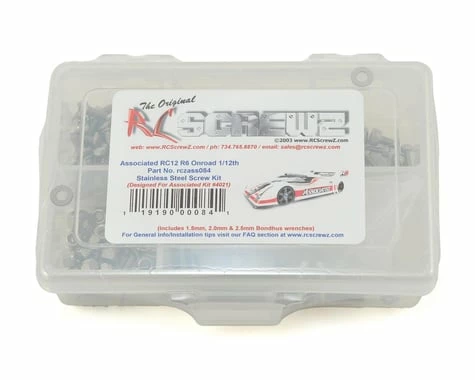 This is an optional RCScrewz Stainless Steel screw kit for the Associated RC12R6. RCScrewz Stainless Screw Kits are 100% complete. Your kit will include everything needed to do a full conversion and more. Stainless Steel Screw Kits are far superior to the screws that come stock with your RC. RCScrewz kits are made with the best stainless steel money can buy. No more bent, rusted, or corroded screws. Never worry about stripped heads again. You will not find a better screw kit for your RC at any price and RCScrewz Guarantee’s it. If for any reason you’re not 100% satisfied with your kit, return your screw kit to RCScrewz and they will send you a full refund for the price of the kit.