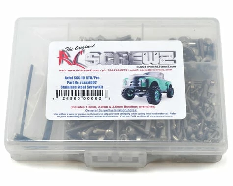 This is an optional RCScrewz Stainless Steel Screw Kit, and is intended for use with the Axial SCX10 1/10 scale rock crawler. RCScrewz Stainless Screw Kits are 100% complete. Your kit will include everything needed to do a full conversion and more. Stainless Steel Screw Kits are far superior to the screws that come stock with your RC. RCScrewz kits are made with the best stainless steel money can buy. No more bent, rusted, or corroded screws. Never worry about stripped heads again. You will not find a better screw kit for your RC at any price and RCScrewz Guarantee’s it. If for any reason your not 100% satisfied with your kit, return your screw kit to RCScrewz and they will send you a full refund for the price of the kit.