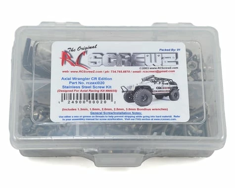This is a optional RCScrewz Stainless Steel Metric screw kit for the Axial AXI90035. RCScrewz Stainless Screw Kits are 100% complete. Your kit will include everything needed to do a full conversion and more. Stainless Steel Screw Kits are far superior to the screws that come stock with your RC. RCScrewz kits are made with the best stainless steel money can buy. No more bent, rusted, or corroded screws. Never worry about stripped heads again. You will not find a better screw kit for your RC at any price and RCScrewz Guarantee’s it. If for any reason your not 100% satisfied with your kit, return your screw kit to RCScrewz and they will send you a full refund for the price of the kit.