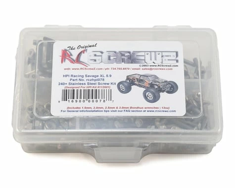 This is an optional RCScrewz Stainless Steel screw kit for the HPI Racing Savage XL 5.9. RCScrewz Stainless Screw Kits are 100% complete. Your kit will include everything needed to do a full conversion and more. Stainless Steel Screw Kits are far superior to the screws that come stock with your RC. RCScrewz kits are made with the best stainless steel money can buy. No more bent, rusted, or corroded screws. Never worry about stripped heads again. You will not find a better screw kit for your RC at any price and RCScrewz Guarantee’s it. If for any reason you’re not 100% satisfied with your kit, return your screw kit to RCScrewz and they will send you a full refund for the price of the kit.