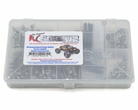 This is a optional RCScrewz Stainless Steel screw kit for the HPI Racing Savage XL Octane. RCScrewz Stainless Screw Kits are 100% complete. Your kit will include everything needed to do a full conversion and more. Stainless Steel Screw Kits are far superior to the screws that come stock with your RC. RCScrewz kits are made with the best stainless steel money can buy. No more bent, rusted, or corroded screws. Never worry about stripped heads again. You will not find a better screw kit for your RC at any price and RCScrewz Guarantee’s it. If for any reason your not 100% satisfied with your kit, return your screw kit to RCScrewz and they will send you a full refund for the price of the kit.