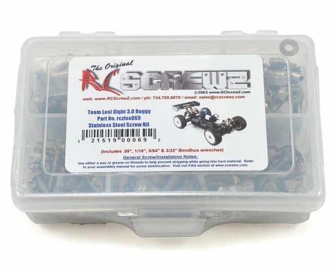 This is an optional RCScrewz Stainless Steel screw kit for the Losi 8ight 3.0. RCScrewz Stainless Screw Kits are 100% complete. Your new kit will include everything needed to do a full conversion and more. Stainless Steel Screw Kits are far superior to the screws that come stock with your RC. RCScrewz kits are made with the best stainless steel money can buy. No more bent, rusted, or corroded screws. Never worry about stripped heads again. You will not find a better screw kit for your RC at any price and RCScrewz Guarantee’s it. If for any reason your not 100% satisfied with your kit, return your screw kit to RCScrewz and they will send you a full refund for the price of the kit.