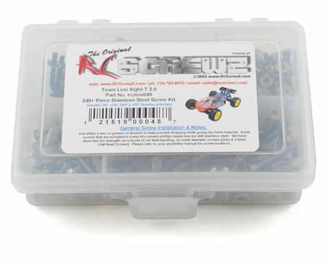 This is a optional RCScrewz Stainless Steel 240 plus piece screw kit for the Losi 8ight T 2.0. RCScrewz Stainless Screw Kits are 100% complete. Your new kit will include everything needed to do a full conversion and more. Stainless Steel Screw Kits are far superior to the screws that come stock with your RC. RCScrewz kits are made with the best stainless steel money can buy. No more bent, rusted, or corroded screws. Never worry about stripped heads again. You will not find a better screw kit for your RC at any price and RCScrewz Guarantee’s it. If for any reason your not 100% satisfied with your kit, return your screw kit to RCScrewz and they will send you a full refund for the price of the kit.