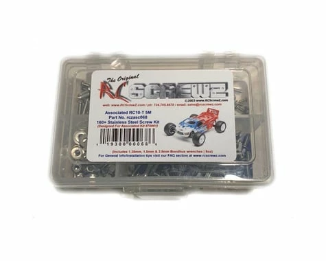 This is a optional RCScrewz Stainless Steel Metric screw kit for the Associated RC10 T5M. RCScrewz Stainless Screw Kits are 100% complete. Your kit will include everything needed to do a full conversion and more. Stainless Steel Screw Kits are far superior to the screws that come stock with your RC. RCScrewz kits are made with the best stainless steel money can buy. No more bent, rusted, or corroded screws. Never worry about stripped heads again. You will not find a better screw kit for your RC at any price and RCScrewz Guarantee’s it. If for any reason your not 100% satisfied with your kit, return your screw kit to RCScrewz and they will send you a full refund for the price of the kit.