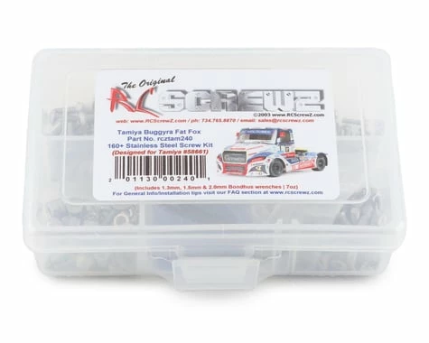 This is a optional RCScrewz Stainless Steel screw kit for the Tamiya Buggyra Fat Fox. RCScrewz Stainless Screw Kits are 100% complete. Your kit will include everything needed to do a full conversion and more. Stainless Steel Screw Kits are far superior to the screws that come stock with your RC. RCScrewz kits are made with the best stainless steel money can buy. No more bent, rusted, or corroded screws. Never worry about stripped heads again. You will not find a better screw kit for your RC at any price and RCScrewz Guarantee’s it. If for any reason your not 100% satisfied with your kit, return your screw kit to RCScrewz and they will send you a full refund for the price of the kit. Â
