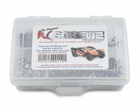 This is a optional RCScrewz Stainless Steel screw kit for the Team Losi 22S SCT. RCScrewz Stainless Screw Kits are 100% complete. Your kit will include everything needed to do a full conversion and more. Stainless Steel Screw Kits are far superior to the screws that come stock with your RC. RCScrewz kits are made with the best stainless steel money can buy. No more bent, rusted, or corroded screws. Never worry about stripped heads again. You will not find a better screw kit for your RC at any price and RCScrewz Guarantee’s it. If for any reason your not 100% satisfied with your kit, return your screw kit to RCScrewz and they will send you a full refund for the price of the kit.