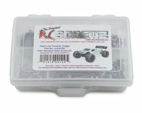 This is a optional RCScrewz Stainless Steel screw kit for the Team Losi Tenacity Truggy. RCScrewz Stainless Screw Kits are 100% complete. Your kit will include everything needed to do a full conversion and more. Stainless Steel Screw Kits are far superior to the screws that come stock with your RC. RCScrewz kits are made with the best stainless steel money can buy. No more bent, rusted, or corroded screws. Never worry about stripped heads again. You will not find a better screw kit for your RC at any price and RCScrewz Guarantee’s it. If for any reason your not 100% satisfied with your kit, return your screw kit to RCScrewz and they will send you a full refund for the price of the kit.