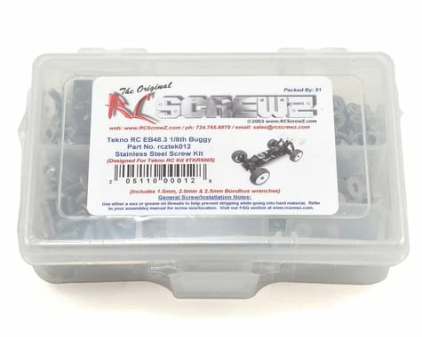 This is a optional RCScrewz Stainless Steel Metric screw kit for the Tekno RC EB48.3. RCScrewz Stainless Screw Kits are 100% complete. Your kit will include everything needed to do a full conversion and more. Stainless Steel Screw Kits are far superior to the screws that come stock with your RC. RCScrewz kits are made with the best stainless steel money can buy. No more bent, rusted, or corroded screws. Never worry about stripped heads again. You will not find a better screw kit for your RC at any price and RCScrewz Guarantee’s it. If for any reason your not 100% satisfied with your kit, return your screw kit to RCScrewz and they will send you a full refund for the price of the kit.