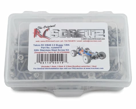 This is an optional RCScrewz Stainless Steel screw kit for the Tekno RC EB48 2.0. RCScrewz Stainless Screw Kits are 100% complete. This 320+ piece kit includes everything needed to do a full conversion and more. Stainless Steel Screw Kits are far superior to the screws that come stock with your RC. RCScrewz kits are made with the best stainless steel money can buy. No more bent, rusted, or corroded screws. Never worry about stripped heads again. You will not find a better screw kit for your RC at any price and RCScrewz Guarantee’s it. If for any reason you’re not 100% satisfied with your kit, return your screw kit to RCScrewz and they will send you a full refund for the price of the kit.