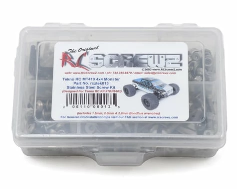 This is a optional RCScrewz Stainless Steel screw kit for the Tekno RC MT410 4×4. RCScrewz Stainless Screw Kits are 100% complete. Your kit will include everything needed to do a full conversion and more. Stainless Steel Screw Kits are far superior to the screws that come stock with your RC. RCScrewz kits are made with the best stainless steel money can buy. No more bent, rusted, or corroded screws. Never worry about stripped heads again. You will not find a better screw kit for your RC at any price and RCScrewz Guarantee’s it. If for any reason your not 100% satisfied with your kit, return your screw kit to RCScrewz and they will send you a full refund for the price of the kit.