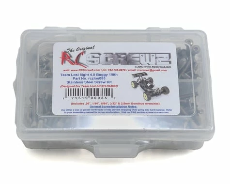 This is a optional RCScrewz Stainless Steel Metric screw kit for the Losi 8IGHT 4.0 Nitro 1/8 buggy. RCScrewz Stainless Screw Kits are 100% complete. Your kit will include everything needed to do a full conversion and more. Stainless Steel Screw Kits are far superior to the screws that come stock with your RC. RCScrewz kits are made with the best stainless steel money can buy. No more bent, rusted, or corroded screws. Never worry about stripped heads again. You will not find a better screw kit for your RC at any price and RCScrewz Guarantee’s it. If for any reason your not 100% satisfied with your kit, return your screw kit to RCScrewz and they will send you a full refund for the price of the kit.