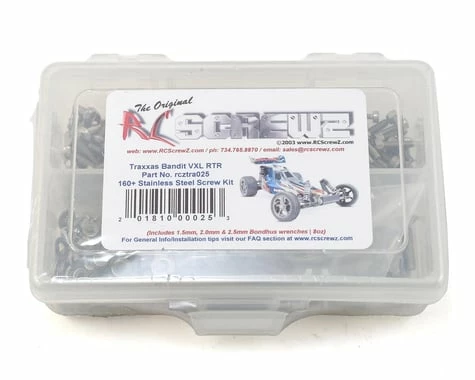 This is an optional RCScrewz Stainless Steel screw kit for the Traxxas Bandit VXL. RCScrewz Stainless Screw Kits are 100% complete. Your kit will include everything needed to do a full conversion and more. Stainless Steel Screw Kits are far superior to the screws that come stock with your RC. RCScrewz kits are made with the best stainless steel money can buy. No more bent, rusted, or corroded screws. Never worry about stripped heads again. You will not find a better screw kit for your RC at any price and RCScrewz Guarantee’s it. If for any reason you’re not 100% satisfied with your kit, return your screw kit to RCScrewz and they will send you a full refund for the price of the kit.