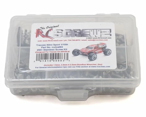 This is an optional RCScrewz Stainless Steel screw kit for the Traxxas Nitro Sport. RCScrewz Stainless Screw Kits are 100% complete. Your kit will include everything needed to do a full conversion and more. Stainless Steel Screw Kits are far superior to the screws that come stock with your RC. RCScrewz kits are made with the best stainless steel money can buy. No more bent, rusted, or corroded screws. Never worry about stripped heads again. You will not find a better screw kit for your RC at any price and RCScrewz Guarantee’s it. If for any reason you’re not 100% satisfied with your kit, return your screw kit to RCScrewz and they will send you a full refund for the price of the kit.