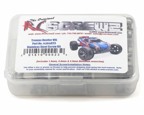 This is an optional RCScrewz Stainless Steel screw kit, and is intended for use with the Traxxas Rustler VXL. RCScrewz Stainless Screw Kits are 100% complete. Your new kit will include everything needed to do a full conversion and more. Stainless Steel Screw Kits are far superior to the screws that come stock with your RC. RCScrewz kits are made with the best stainless steel money can buy. No more bent, rusted, or corroded screws. Never worry about stripped heads again. You will not find a better screw kit for your RC at any price and RCScrewz Guarantee’s it. If for any reason your not 100% satisfied with your kit, return your screw kit to RCScrewz and they will send you a full refund for the price of the kit.