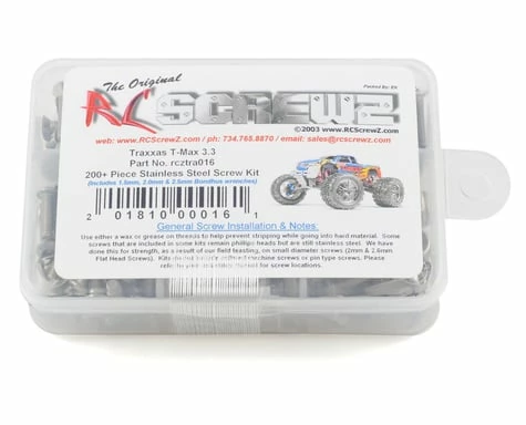 This is a optional RCScrewz Stainless Steel 200 plus piece screw kit for the Traxxas T-Maxx 3.3. RCScrewz Stainless Screw Kits are 100% complete. Your new kit will include everything needed to do a full conversion and more. Stainless Steel Screw Kits are far superior to the screws that come stock with your RC. RCScrewz kits are made with the best stainless steel money can buy. No more bent, rusted, or corroded screws. Never worry about stripped heads again. You will not find a better screw kit for your RC at any price and RCScrewz Guarantee’s it. If for any reason your not 100% satisfied with your kit, return your screw kit to RCScrewz and they will send you a full refund for the price of the kit.