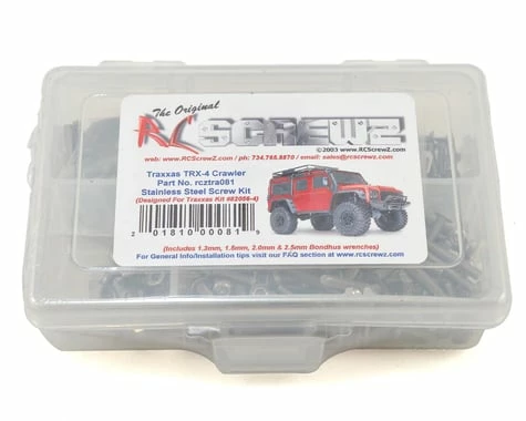 This is a optional RCScrewz Stainless Steel screw kit for the Traxxas TRX-4 Crawler. RCScrewz Stainless Screw Kits are 100% complete. Your kit will include everything needed to do a full conversion and more. Stainless Steel Screw Kits are far superior to the screws that come stock with your RC. RCScrewz kits are made with the best stainless steel money can buy. No more bent, rusted, or corroded screws. Never worry about stripped heads again. You will not find a better screw kit for your RC at any price and RCScrewz Guarantee’s it. If for any reason your not 100% satisfied with your kit, return your screw kit to RCScrewz and they will send you a full refund for the price of the kit.
