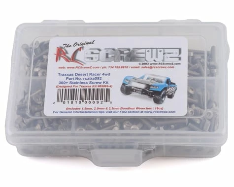 This is a optional RCScrewz Traxxas Desert Racer 4wd Stainless Steel Screw Kit. RCScrewz Stainless Screw Kits are 100% complete. Your screw kit will include everything needed to do a full conversion and more. Stainless Steel Screw Kits are far superior to the screws that come stock with your RC. RCScrewz kits are made with the best stainless steel money can buy. No more bent, rusted, or corroded screws. Never worry about stripped heads again. You will not find a better screw kit for your RC at any price and RCScrewz Guarantee’s it. If for any reason your not 100% satisfied with your kit, return your screw kit to RCScrewz and they will send you a full refund for the price of the kit.Â