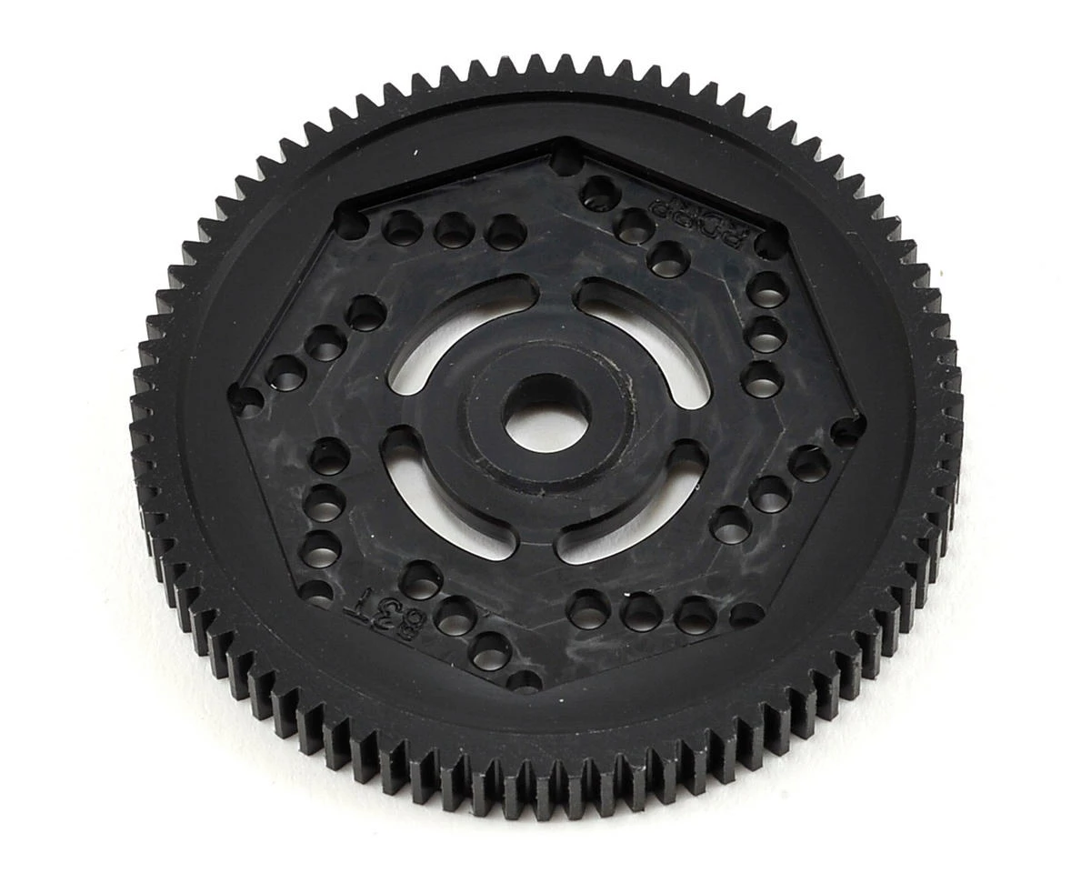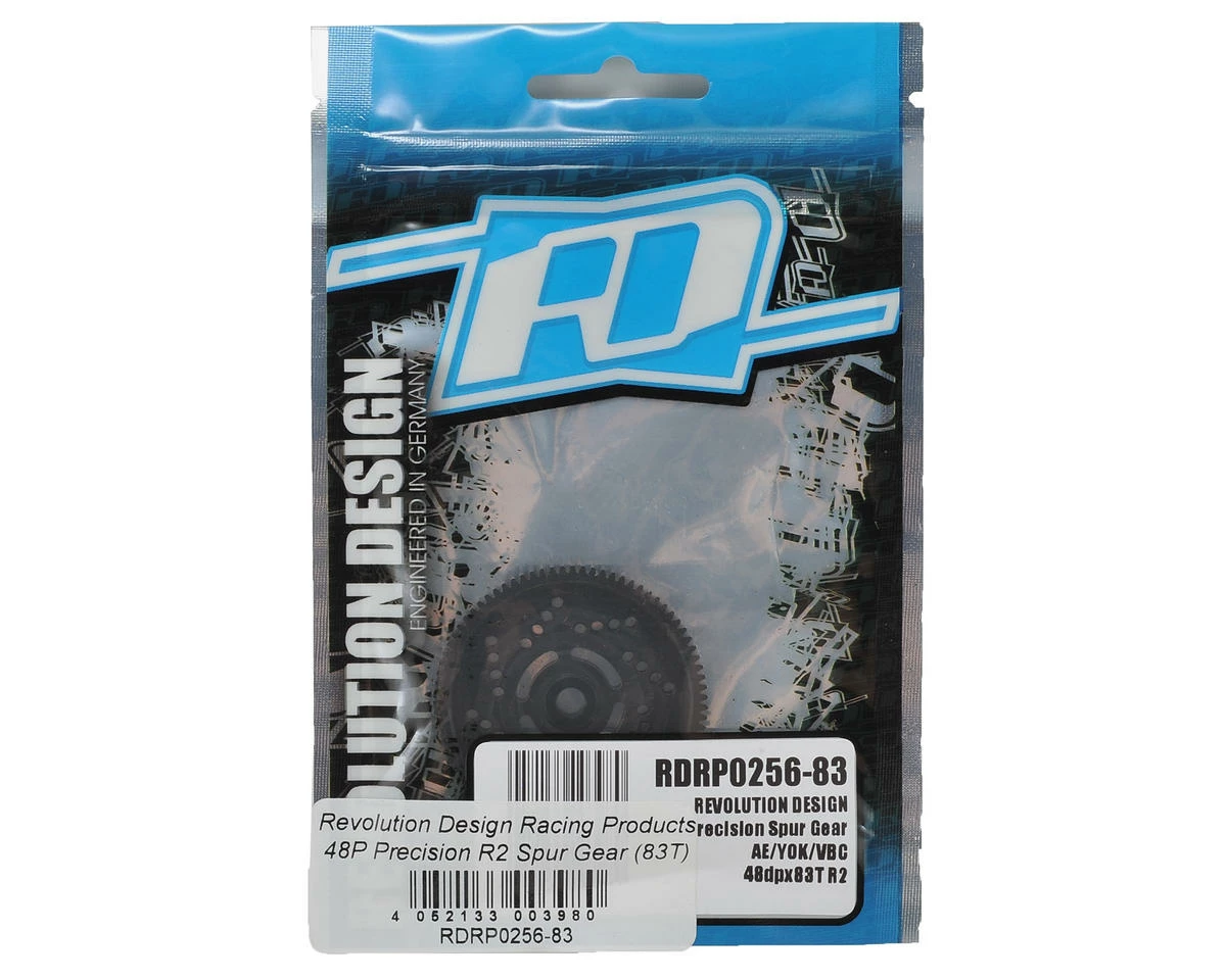 Revolution Design Racing Product’s Precision R2 48 Pitch Spur Gears are specially designed for the Team Associated, Yokomo, VBC and similar 1/10th scale vehicles. Utilizing the wide, Revolution2 gear profile for an increased contact patch that improves durability without sacrificing efficiency. Combine this with a specially formulated composite material for high strength, low running noise, reliability and precision machining. The precision machining not only increases the durability of the gears but also helps when setting gear mesh. The gears also feature machined vent holes to minimize heat build-up when running a soft slipper setting and reduce weight. Gears are engraved with tooth count for easy identification. Choose from stock racing 72T and 78T and modified racing 83T and 87T variants.