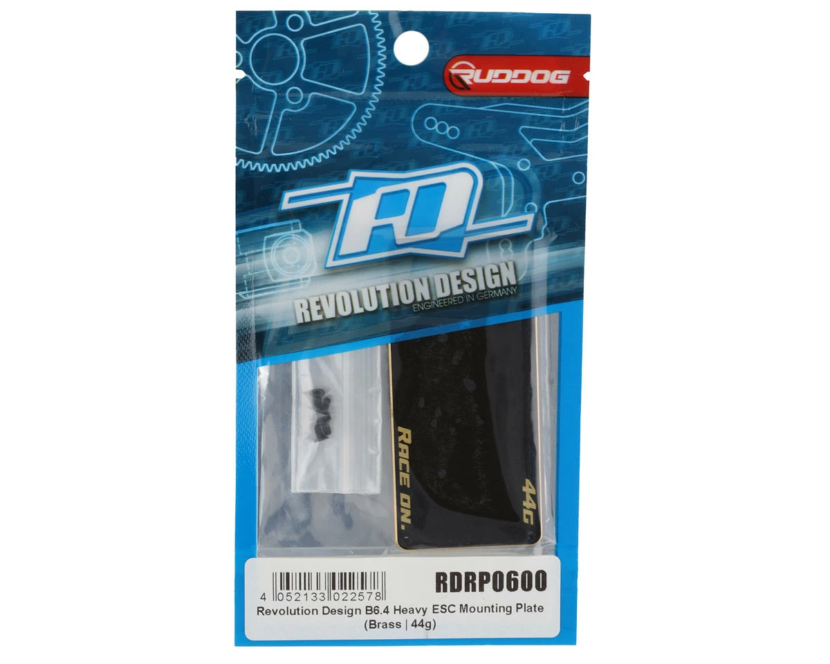 The Revolution Design Associated B6.4 Brass ESC Mounting Plate is a great option to help you lower the CG of your buggy. Made from machined brass, this adds another point of adjustment for the Team Associated B6.4 or B6.4D. Weighing 11g more than a standard steel plate, this can increase corner speed and stability. Package includes one chassis plate.