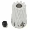 Robinson Racing 64 Pitch “Aluminum Pro” Pinion Gears are machined from aircraft aluminum, lightened and then they’re coated twice with a super hard anodized finsih. Recommended for onroad, these gears are available in a variety of tooth count options to fine tune torque and top speed. Package includes one pinion gear and one 5-40 set screw.