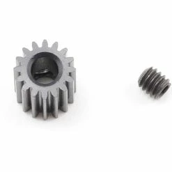 Robinson Racing 64 Pitch “Aluminum Pro” Pinion Gears are machined from aircraft aluminum, lightened and then they’re coated twice with a super hard anodized finsih. Recommended for onroad, these gears are available in a variety of tooth count options to fine tune torque and top speed. Package includes one pinion gear and one 5-40 set screw.