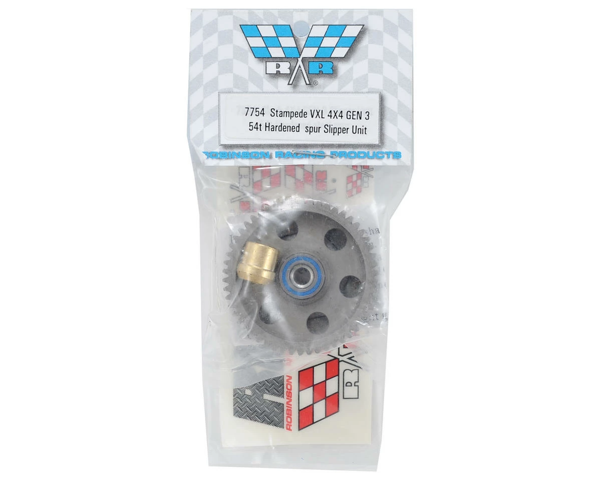 This is an optional Robinson Racing Gen3 Slipper Kit, and is intended for use with the Traxxas Stampede 4×4. Robinson Racing GEN3 Slipper Units are over-engineered to meet the punishing demands of the most powerful brushless motor systems! The new GEN3 Slipper Unit is a captured design to prevent slipper pad blowout and deliver maximum power to the ground. The hi-performance hardened steel spur gear will not fail or strip. Strong and tough 0.8 module/32-pitch teeth handle all the power you can pour on the spur gear. Aircraft grade billet aluminum backplate will not bend or break. Increased surface area of the oversized pad insures dependable performance. Less total parts reduces flex and wobble in the spur gear and slipper unit.
