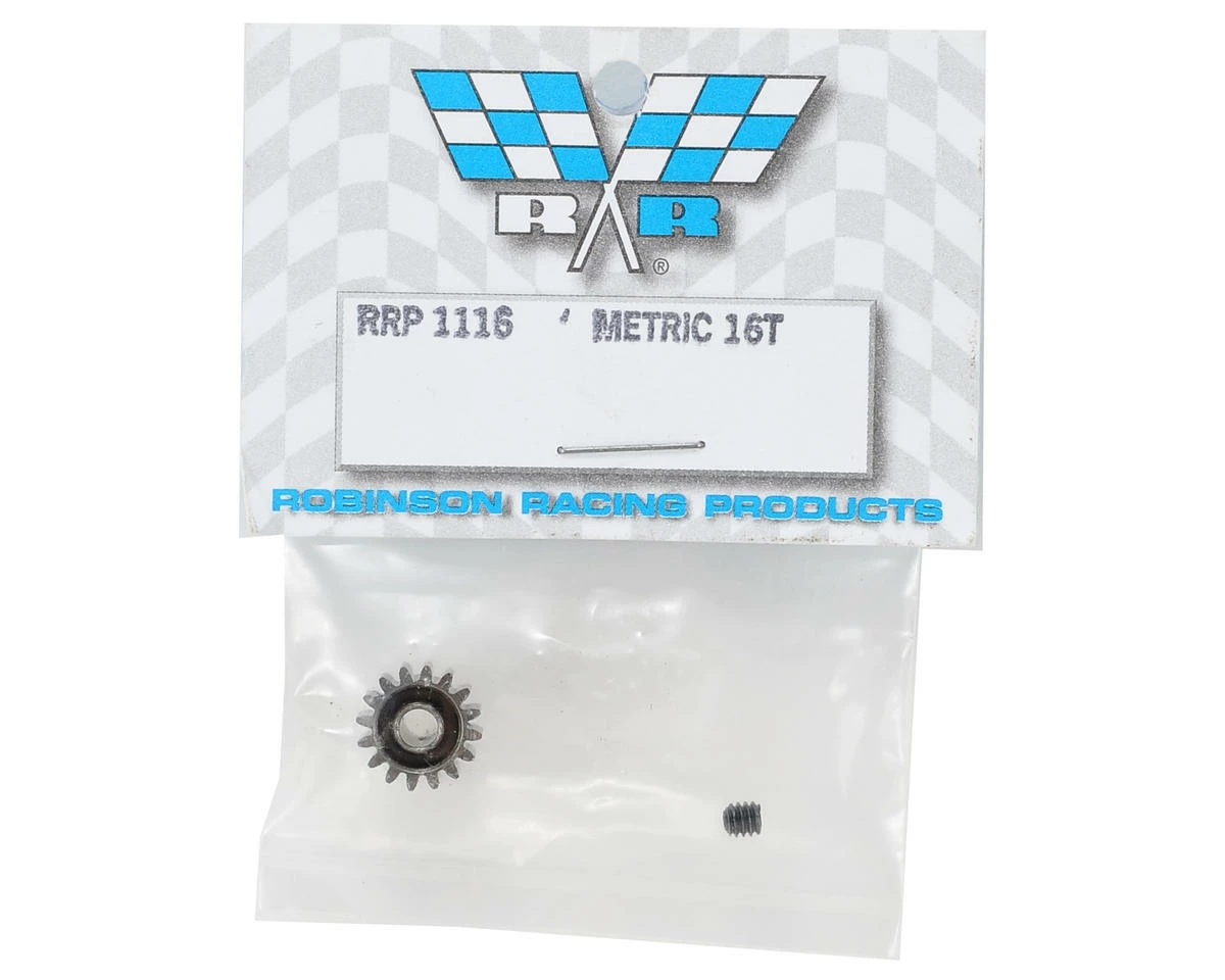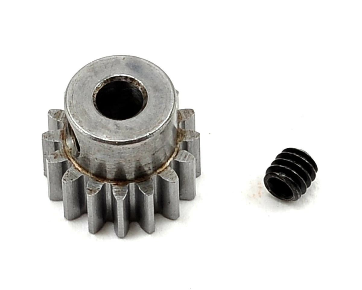 Robinson Racing Mod 0.6 Metric Pinion Gears are precision cut from hard alloy steel and lightened to reduce weight. The Gear has an 1/8 inch bore so it fits any motor with a standard 1/8″ motor shaft, and one 5-40 set screw has been included.