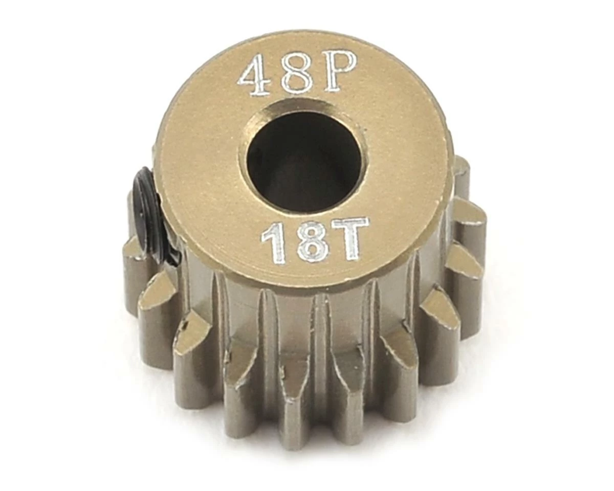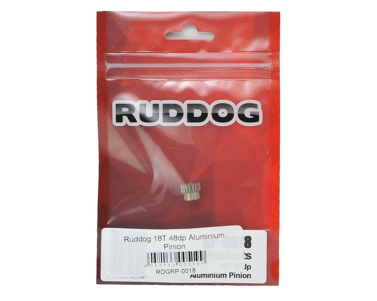 Ruddog Aluminum 48 Pitch Pinion Gears are a great option for any motor application where 48P is required and low weight and reduced rotational mass is desired. All Ruddog pinion gears are etched with tooth count and tooth pitch and include one set screw.