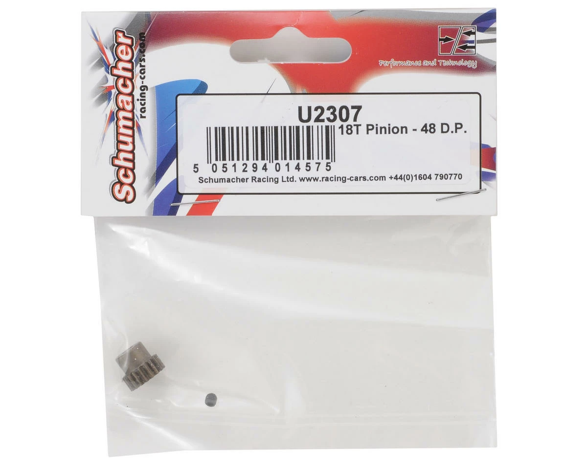 This is a Schumacher 48 Pitch pinion gear. Choose from multiple tooth count options to fine tune the gear ratio of your vehicle. Package includes one pinon gear and one set screw.